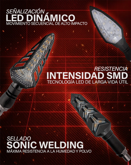 Las direccionales cuentan con un diseño aerodinámico de alta visibilidad, fabricadas con materiales de alta resistencia.